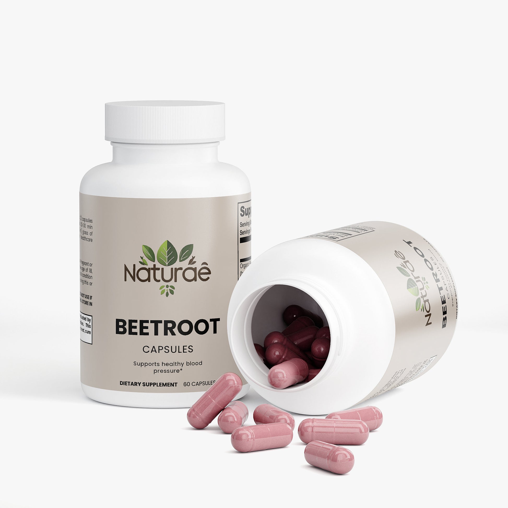 Ingredients: Organic Beetroot Powder (beta vulgaris), Hypromellose (vegetable capsule), Microcrystalline Cellulose, Magnesium Stearate.